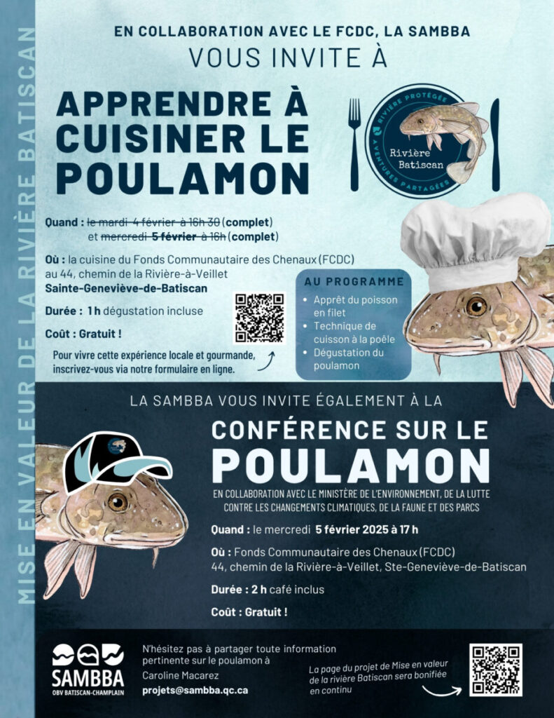 La SAMBBA, en collaboration avec le Fonds Communautaire des Chenaux, vous invite à nous rejoindre pour un atelier de cuisine pratique et convivial où vous apprendrez à apprêter et cuisiner le poulamon en filet.