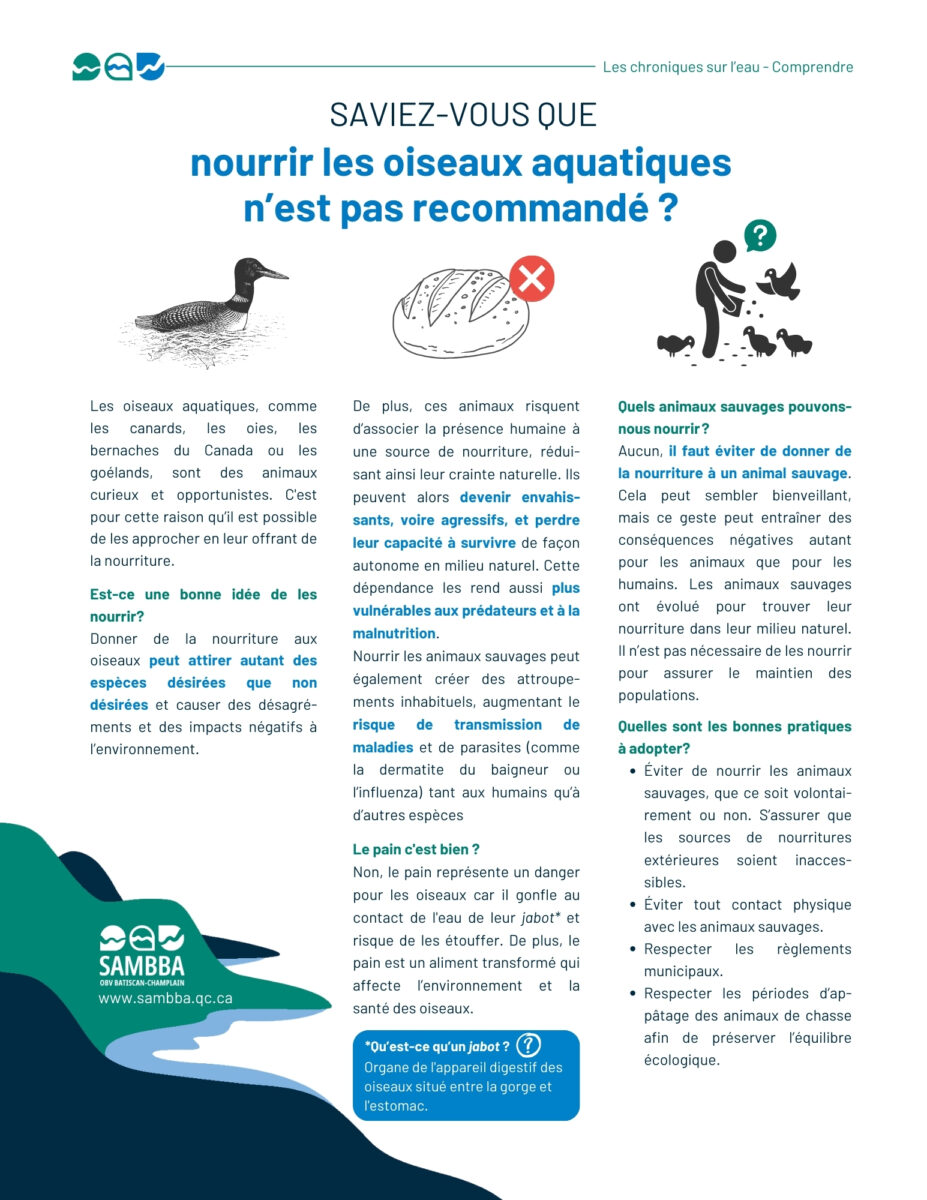 Nourrir les animaux aquatiques n'est pas recommandé.