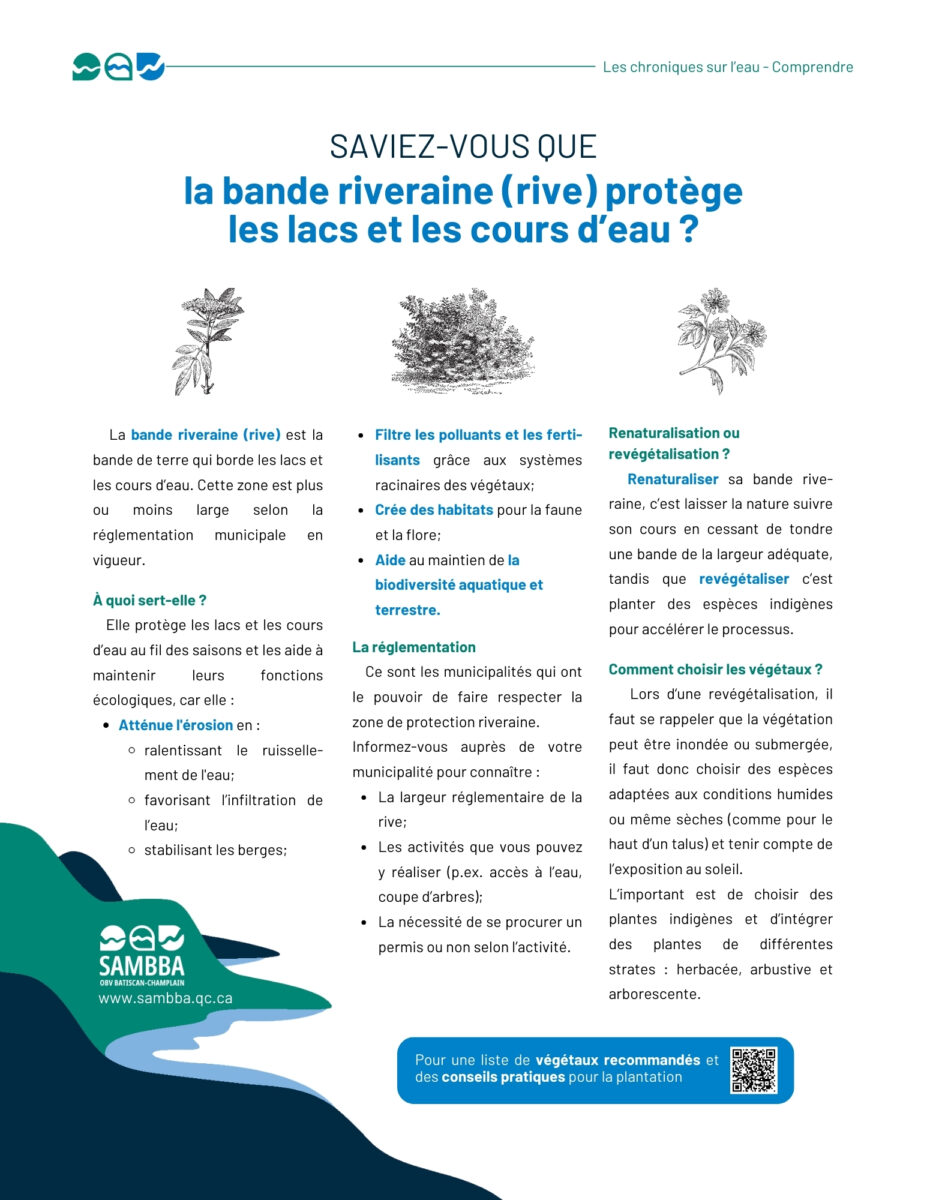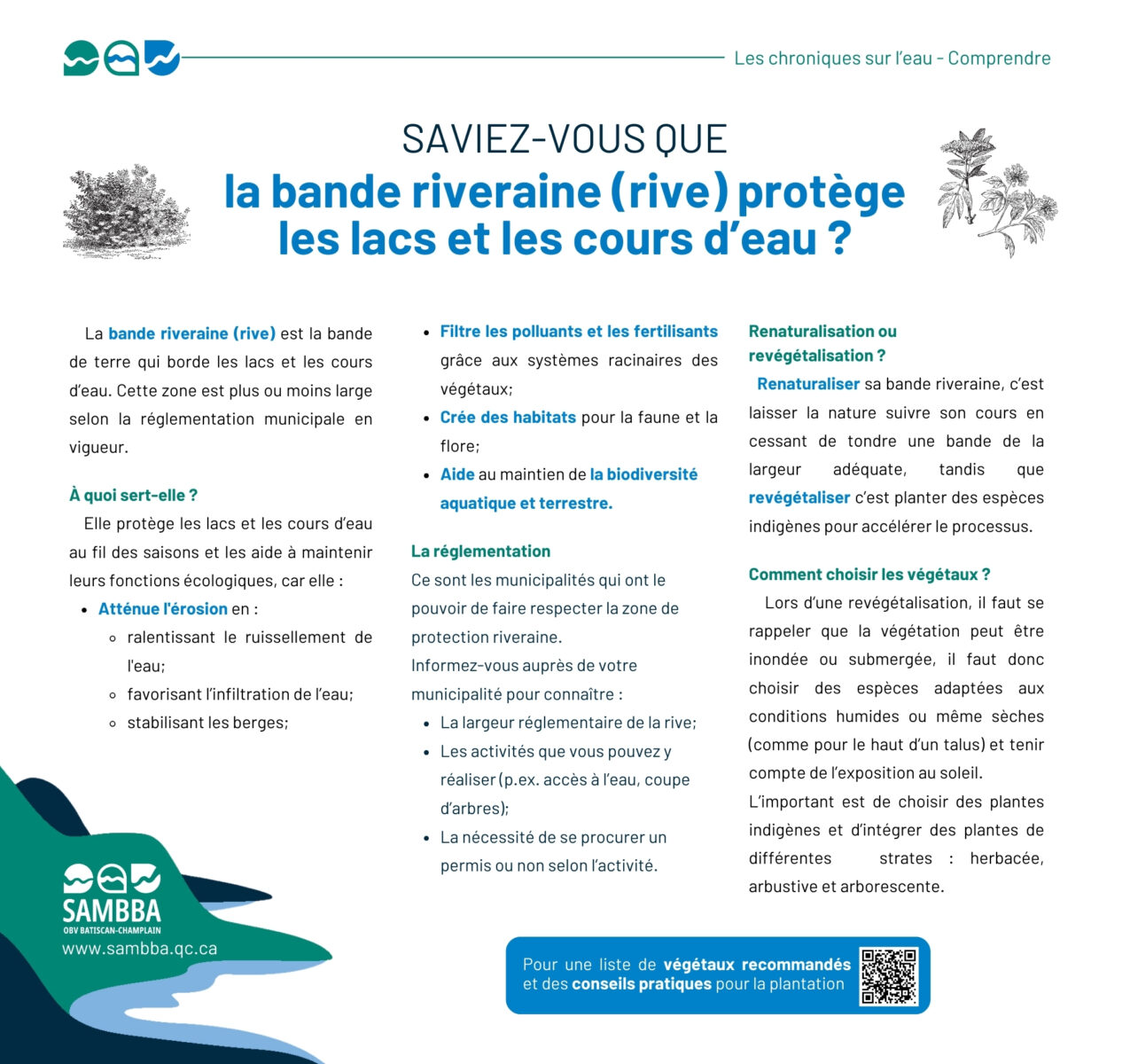 La bande riveraine (rive) protège las lacs et les cours d'eau.