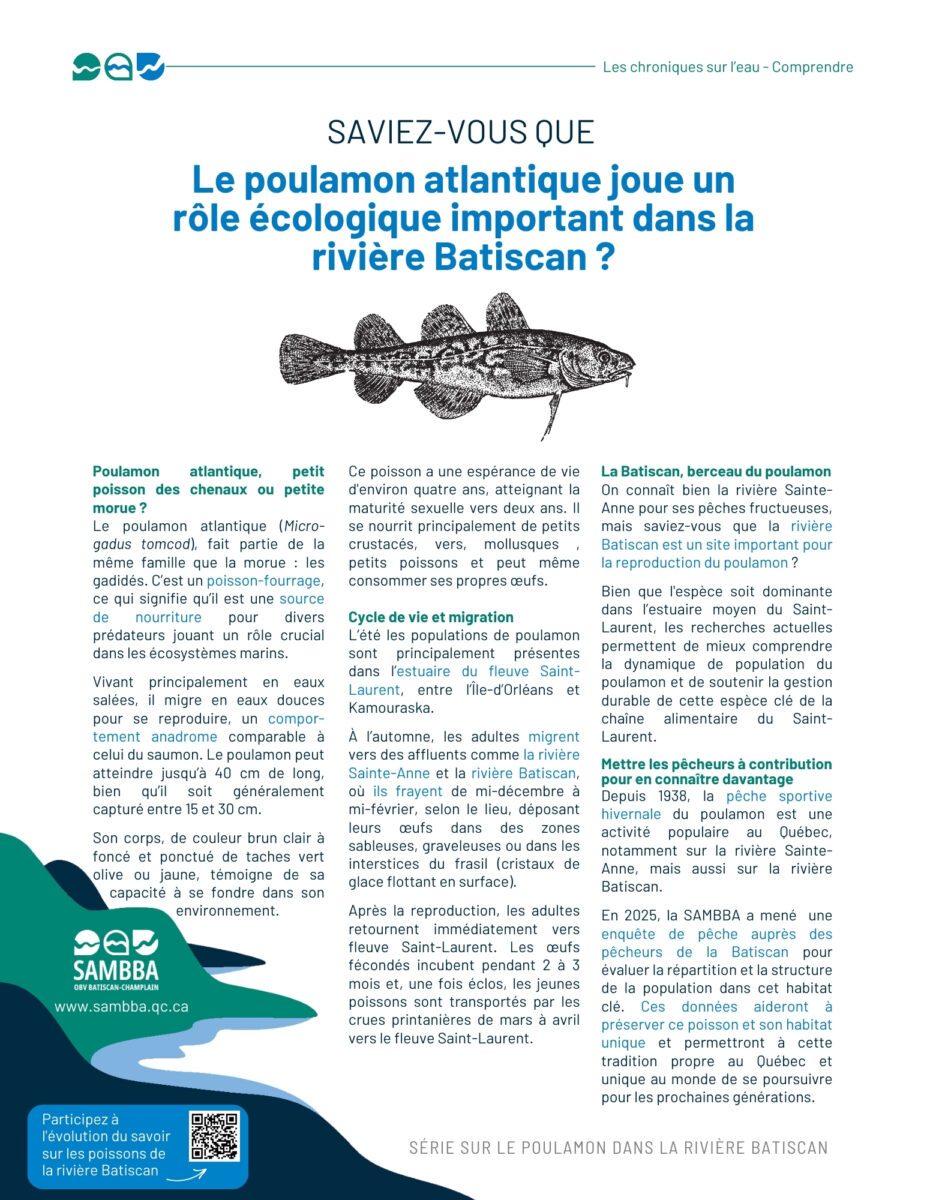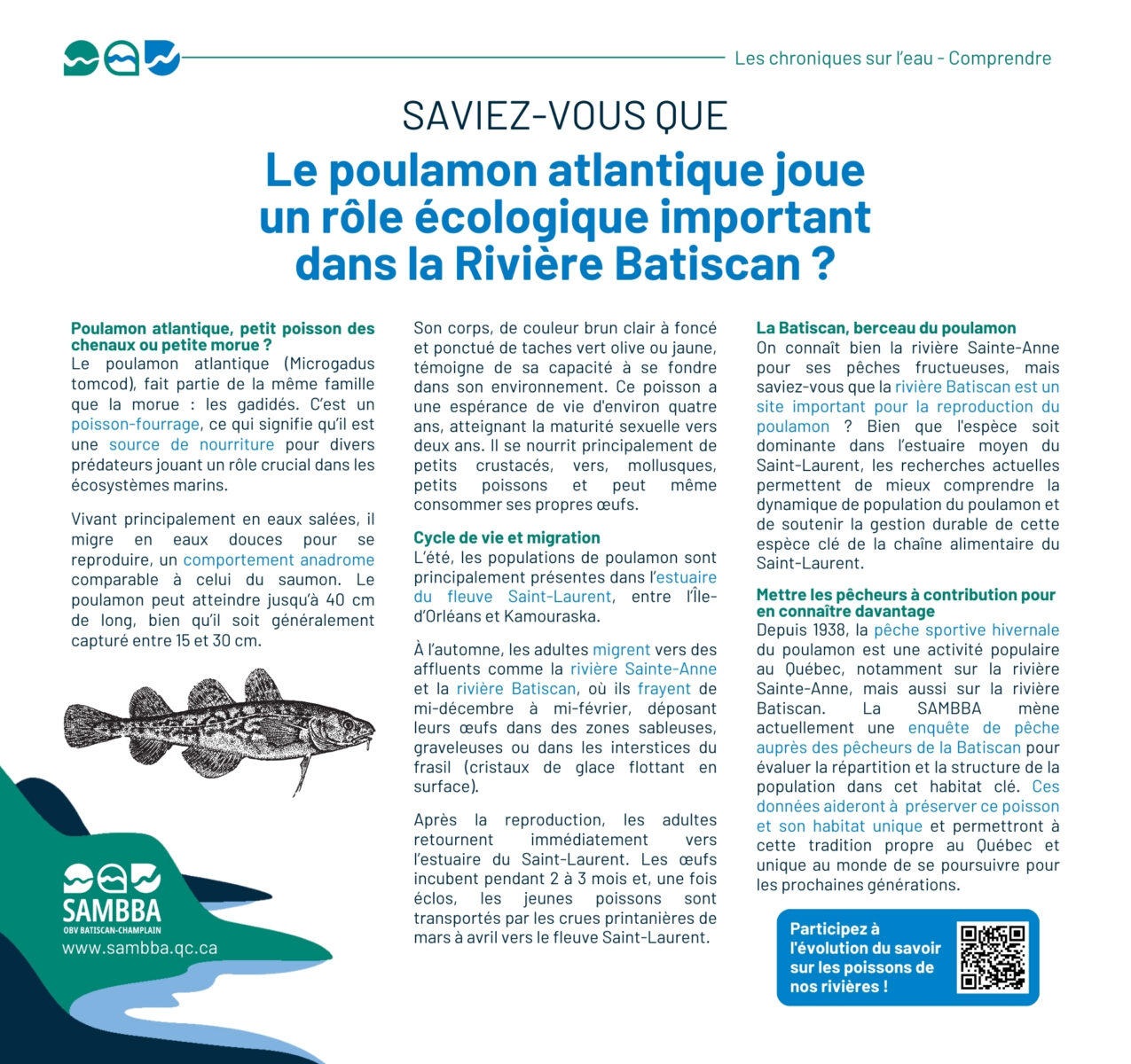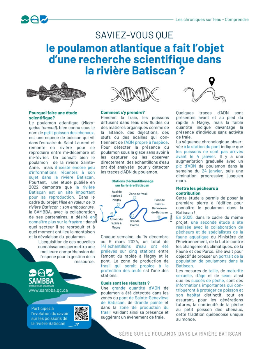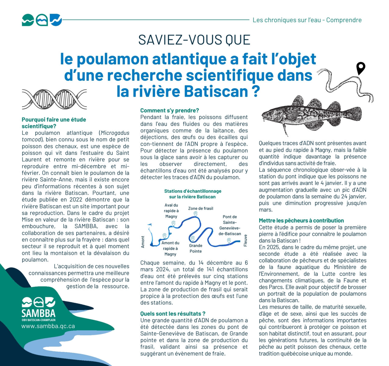 Le poulamon atlantique a fait l'objet d'une recherche scientifique dans la rivière Batiscan.