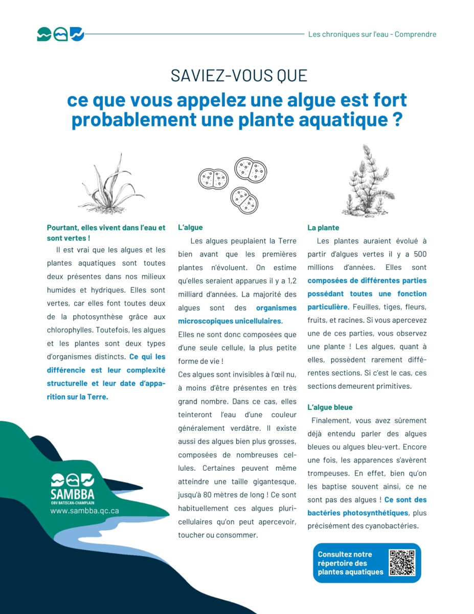 Ce que vous appelez une algue est fort probablement une plante aquatique.