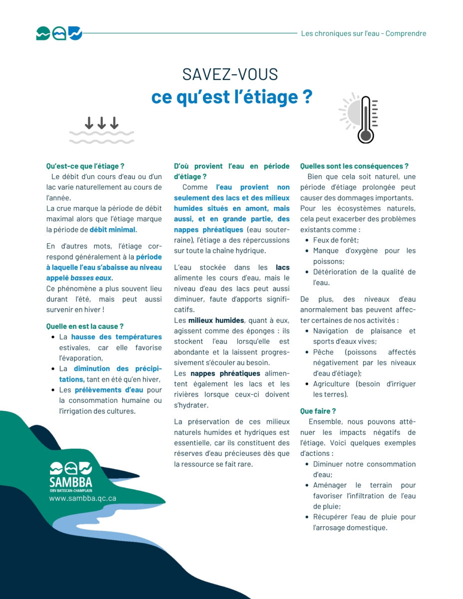 Les Chroniques sur l’eau permettent de comprendre l’eau et ses phénomènes dans la zone de gestion intégrée de l'eau Batiscan-Champlain.