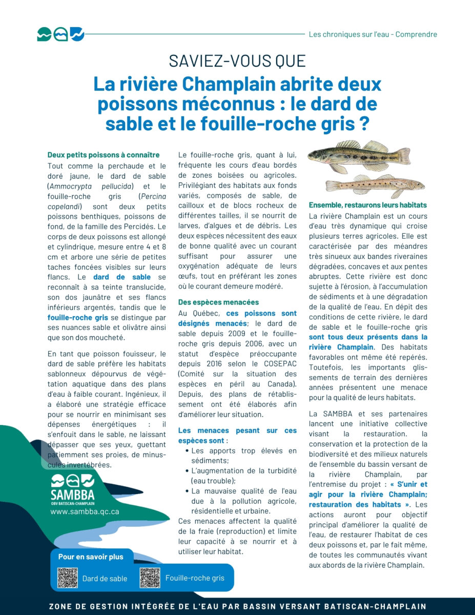 La rivière Champlain abrite deux poissons méconnus: dard de sable et fouille-roche gris