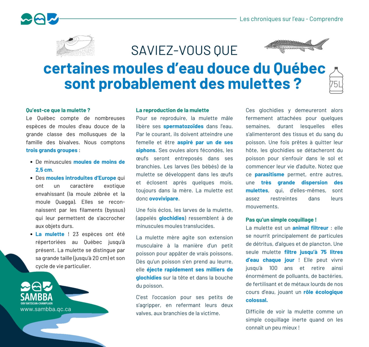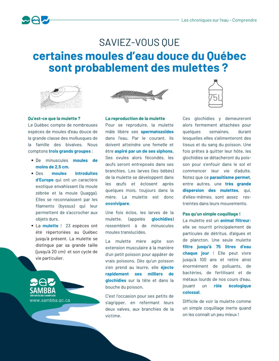 Certaines moules d'eau douce du Québec sont probablement des mulettes.