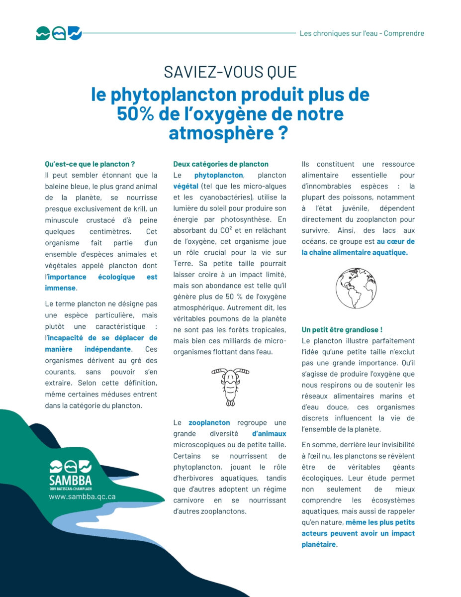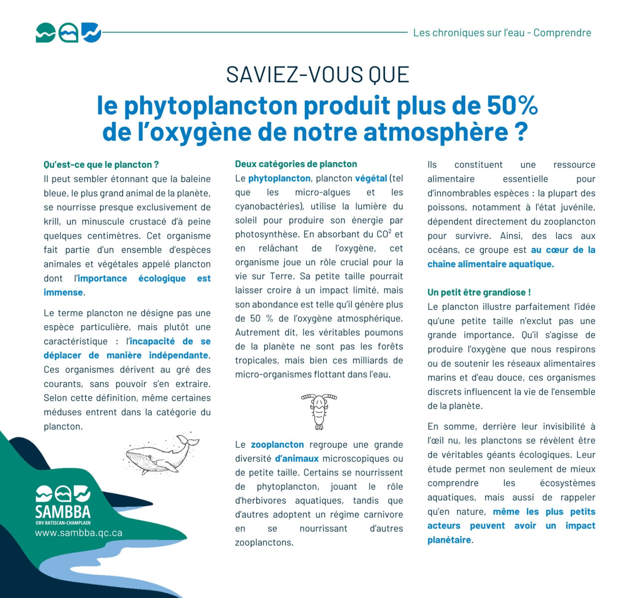 Le phytoplancton produit plus de 50% de l'oxygène de notre atmosphère.
