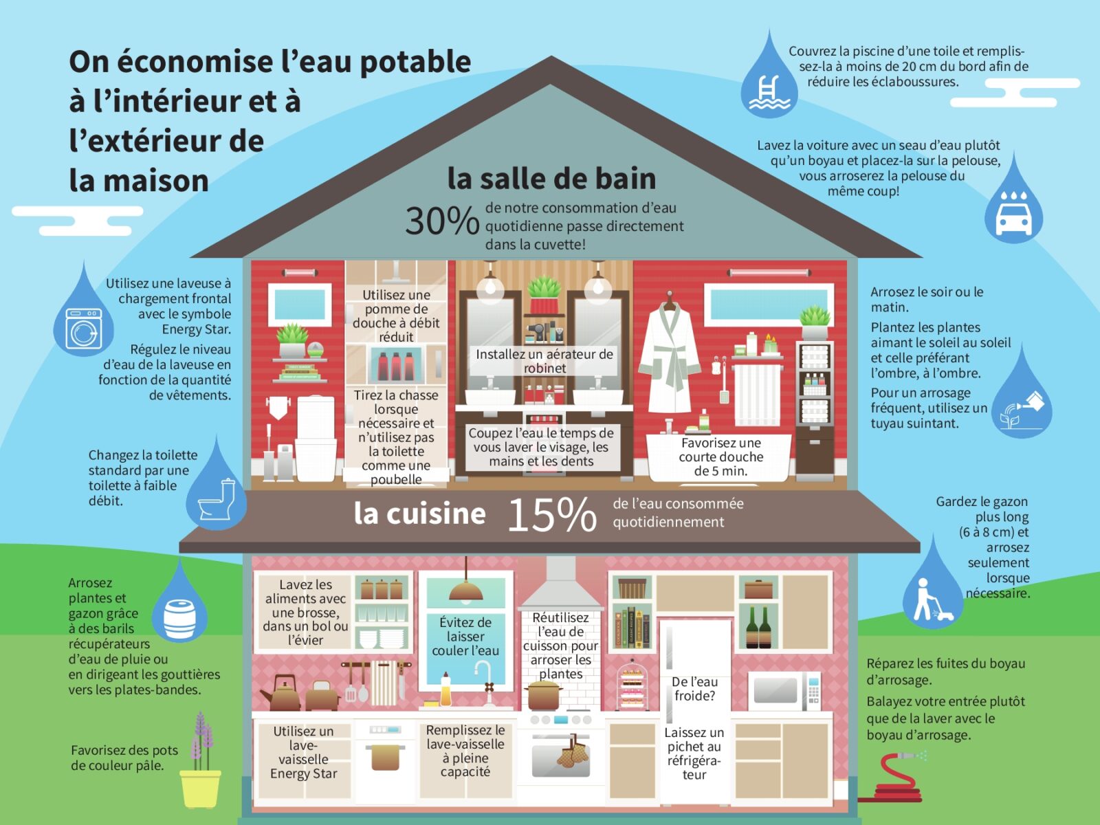 Nous pouvons tous faire de petits gestes pour économiser l'eau dans et à l'extérieur de la maison