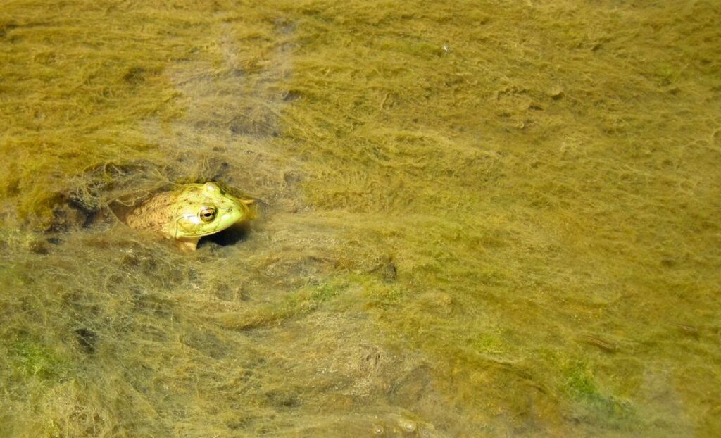 Présent sur les roches dans les secteurs peu profond du lac. Le périphyton correspond à des algues microscopiques proliférant sur différentes structures (roche, billot de bois, muret, etc.) dans l’eau. Les lacs eutrophes ont généralement une grande concentration de périphyton sur les structures submergées. (MELCCFP,s. d.).