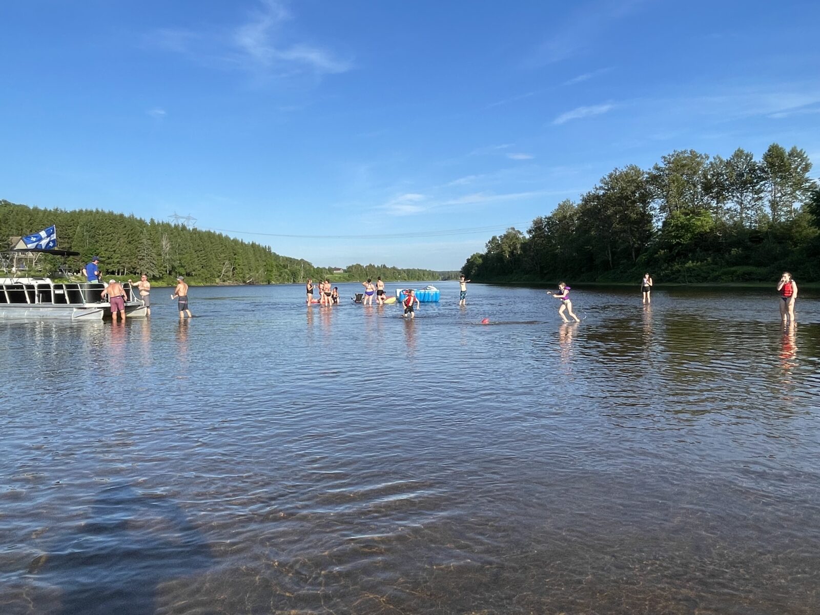 - À quelque part caché sous l’eau, un immense banc de sable au beau milieu de notre belle rivière Batiscan…. Les meilleurs amis du monde fêtent la Saint-Jean Baptiste 2023! Un beau moment rassembleur parfait…. MAGIQUE! par Samuel Marcotte.