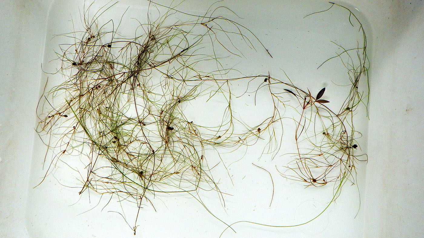 De plus, une belle surprise attendait Lucas, biologiste responsable du projet: une plante aquatique dont la présence n’était pas connue au Québec, le potamot bicupulé (Potamogeton bicupulatus Fern.). Une beauté cachée du lac Huron (Lac-aux-Sables).