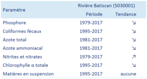 • Dégradation de la qualité de l’eau 2 stations (mauvaise à très mauvaise):